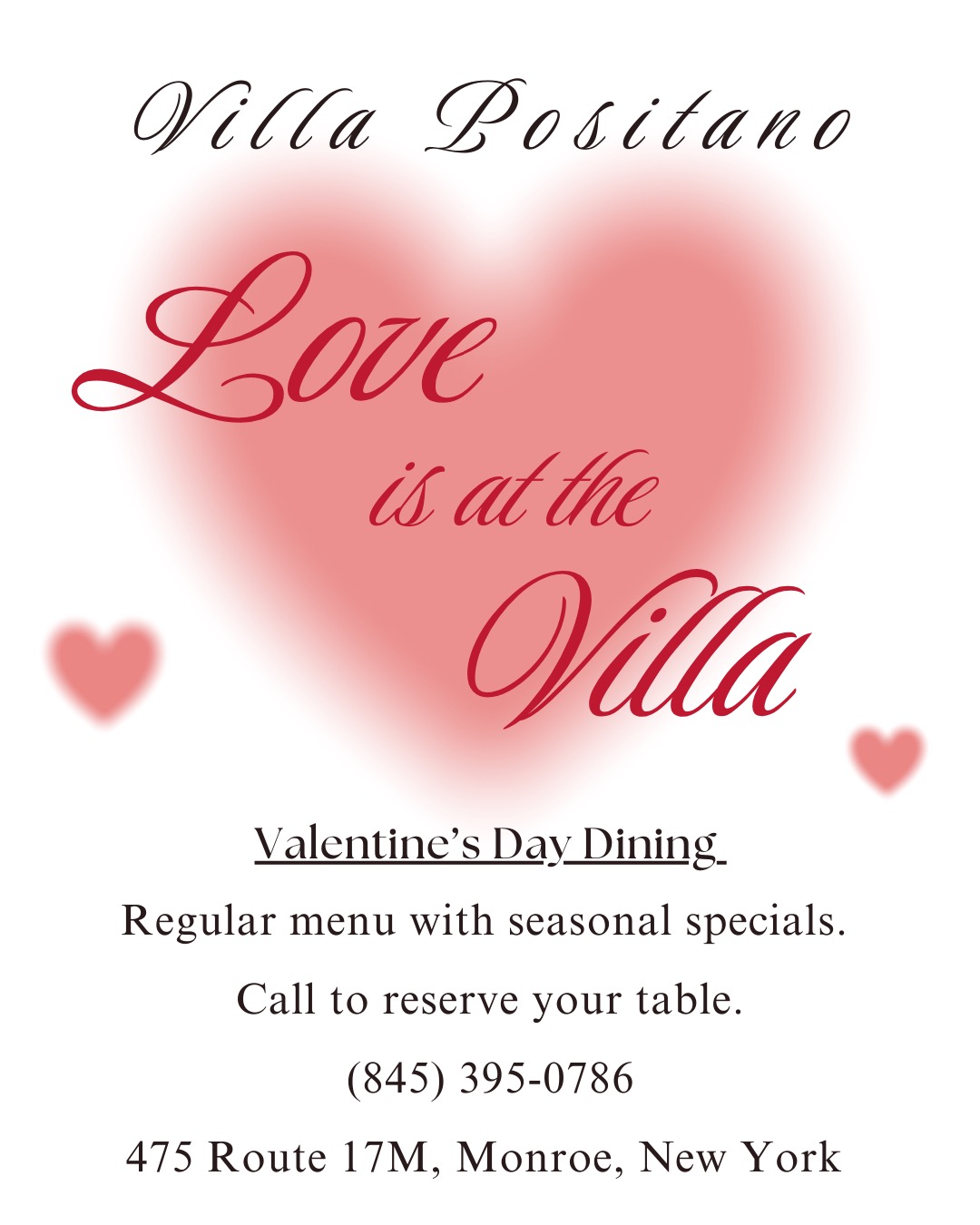 Villa Positano is a Southern-style Italian Restaurant in Monroe, NY. Located minutes from The Woodbury Common Premium Outlets, our restaurant serves authentic Southern Italian cooking and New York style pizza. Our menu draws its inspiration from the sunny Mediterranean coast of Positano, Italy, our hometown.